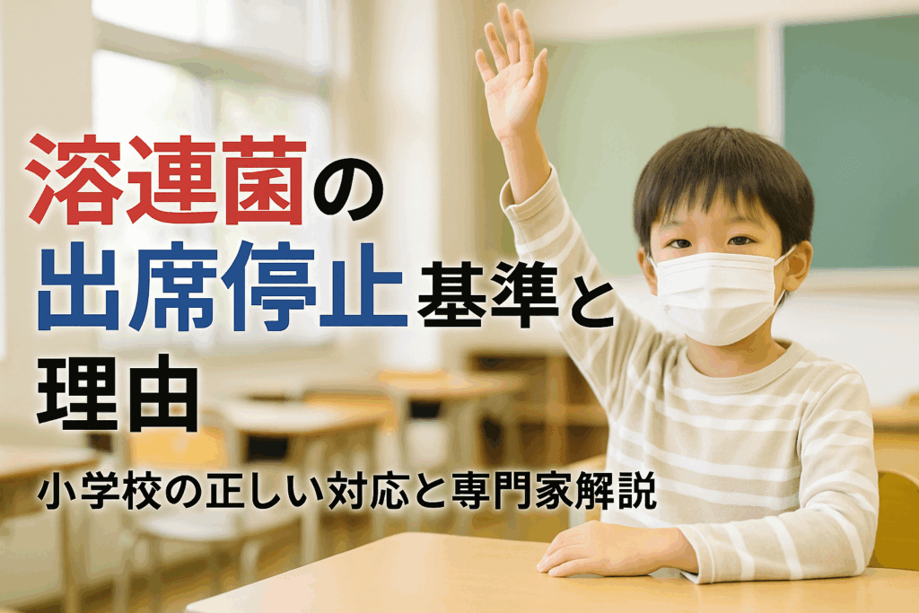 小学校での溶連菌感染症は、発熱や咽頭痛、発疹などが特徴的です。診断は医師による検査が基本で、「抗生物質治療開始後24時間が経過」し症状がおさまれば、通常は登校が認められます。強い感染力を持つため、発症した場合は学校保健安全法に基づき一定期間の出席停止が必要です。下記のような基準に沿って判断されています。